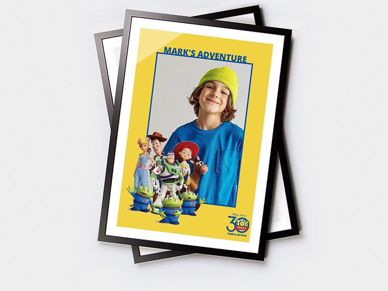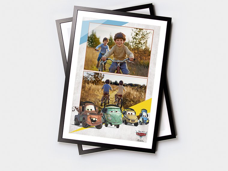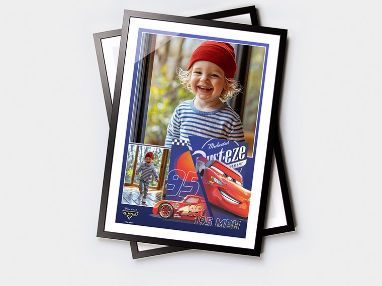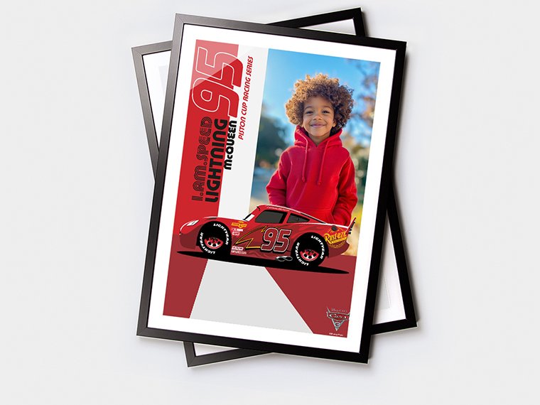Deine Fotos vereint mit Lightning McQueen, Mater & Co. Verfügbar mit und ohne Rahmen.