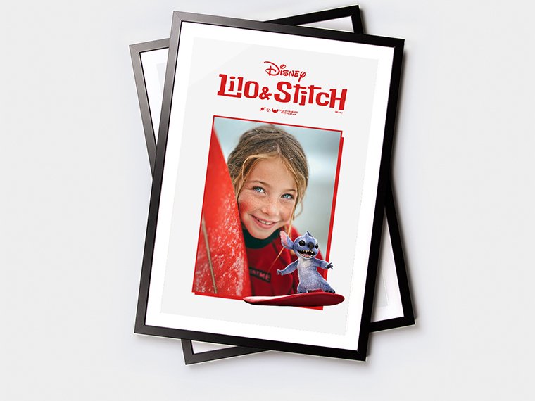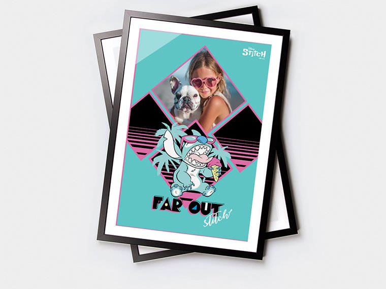 Dein Lieblingsfoto vereint mit Stitchs fröhlicher Welt. Verfügbar mit und ohne Rahmen.