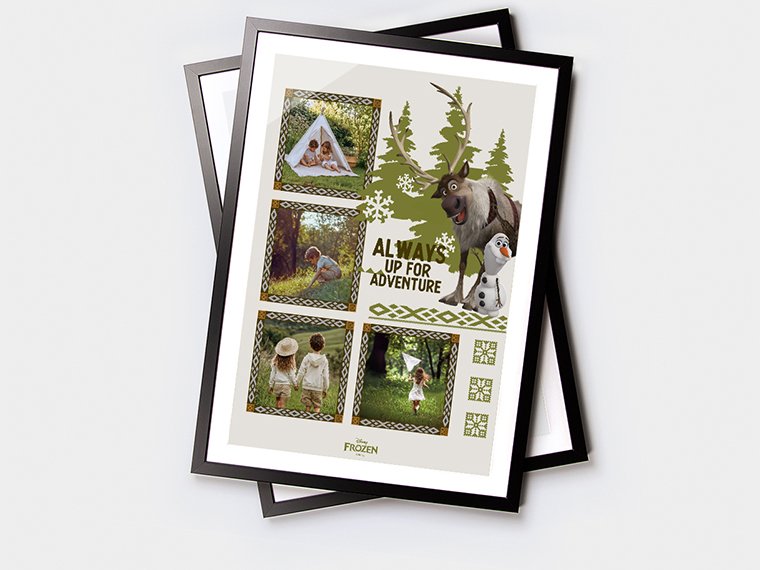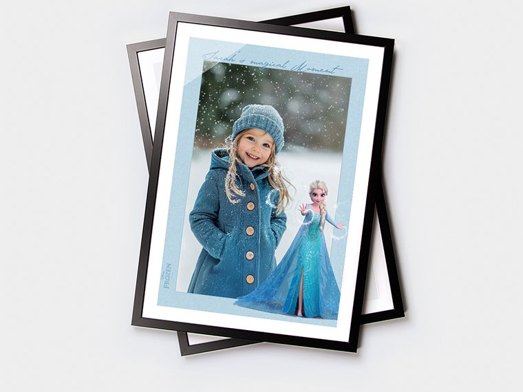 Dein Lieblingsfoto vereint mit Elsas magischer Winterwelt. Verfügbar mit und ohne Rahmen.