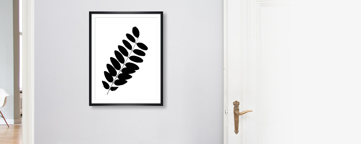 ROBINIENBAUM BLATT im schwarzen Holzrahmen. Unser Bestseller-Holzrahmen zeigt jedes Motiv von seiner besten Seite. Mit seinen 22 mm gibt er stabilen Halt ohne zu aufdringlich zu sein. Ein perfekter Gentleman für Ihr neues Lieblingsmotiv.