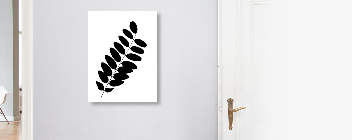 ROBINIENBAUM BLATT auf Leinwand im Format Ihrer Wahl. Mit gespiegelten oder umgeschlagenem Rand bzw. der Randfarbe Ihrer Wahl. Mit 2,5 oder 3,8 cm starken Perfect Frame Rahmen.