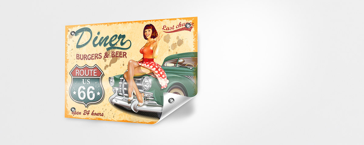 Mettez votre photo ou votre logo sur une bannière PVC avec œillets ! La bannière PVC est résistante aux intempéries (eau, lumière...) et convient parfaitement à un affichage extérieur. Commandez une bannière PVC stable grâce à ses œillets et que vous choisissez dans la taille votre choix, conçu sur mesure. Les œillets sont automatiquement positionnés en fonction du format d'impression à une distance d'environ 50 cm. Notre procédé d'impression UV de qualité fera ressortir fidèlement les couleurs de votre image d'origine.